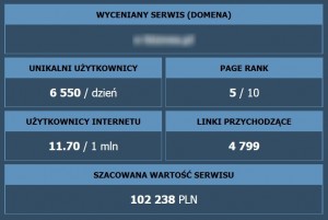Narzędzie, które Ci polecam, wycenia stronę www głównie pod względem ilości osób, które na nią trafiają. Jest to jednak tylko jeden z wielu elementów wpływających na rzeczywistą wartość serwisu www. Dlatego patrz na wynik z ostrożnością, ale skorzystaj z tej możliwości wyceny.